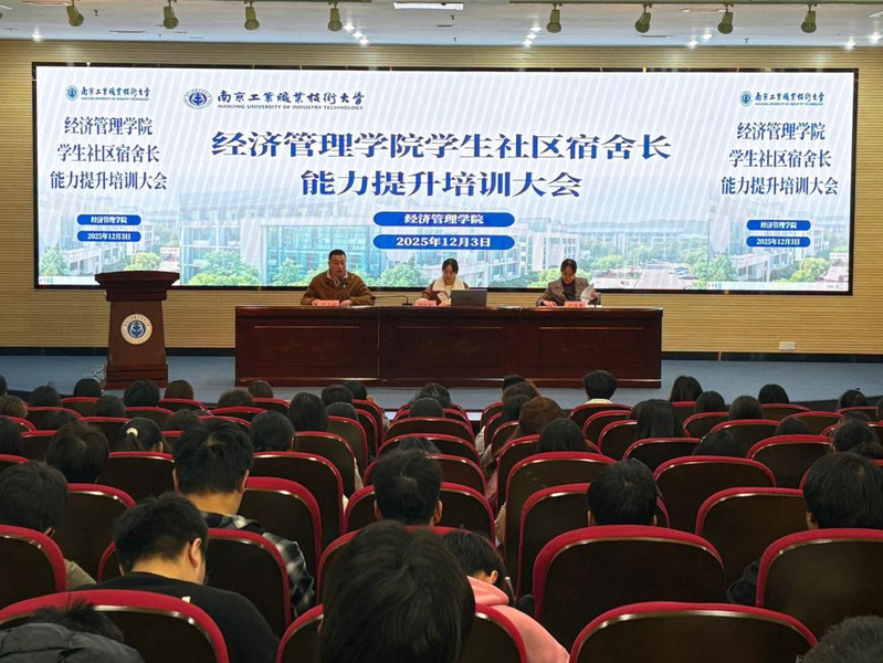 为深入推进“一站式”学生社区综合管理模式建设,夯实社区治理的微观基础,提升宿舍长队伍的综合素养与履职能力,12月3日下午,经济管理学院在学术交流报告厅成功举办了“学以领航,行以筑家”学生社区宿舍长能力提升培训大会。校学工处心理健康中心刘长虹老师、辅导员严潇睿老师、安志超老师、24和25级宿舍长代表共计200余人参加了本次大会。